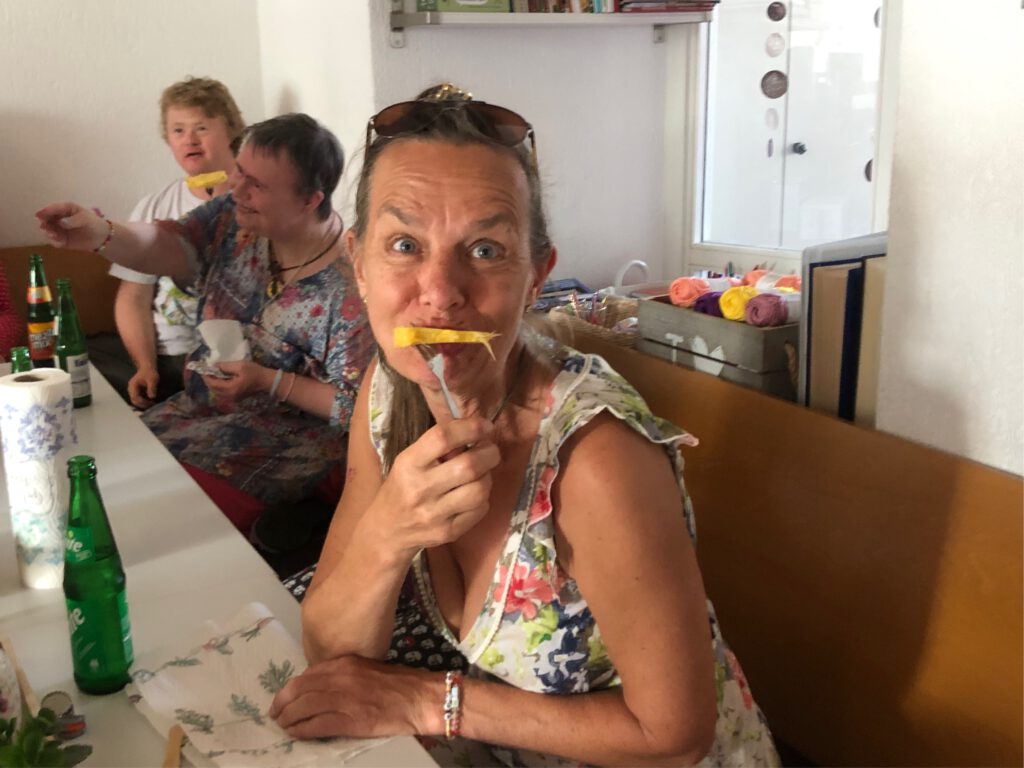 Zum Grillen gehört nicht nur die gute Wurst, sondern auch ein schöner Hut. Olli hat uns allen den Deckel aufgesetzt. Da schmeckt die Wurst noch besser.